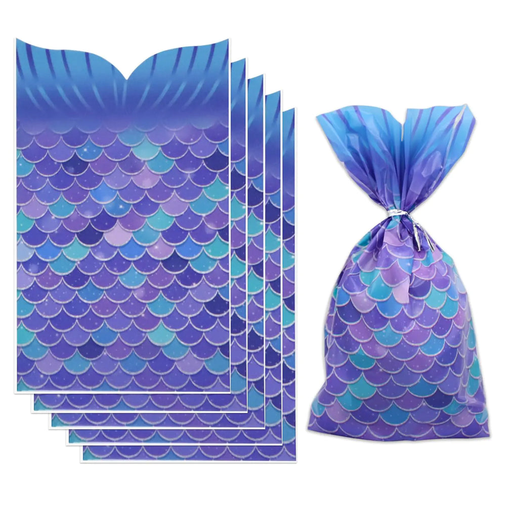 Make your party magical with the Mermaid Party Favor Bags by Dohia. Featuring a shimmering mermaid tail design in vibrant blue and purple tones, these cello treat bags are perfect for birthdays, baby showers, and under-the-sea–themed celebrations. Each bag is crafted from durable, food-safe plastic, making them ideal for holding cookies, candies, baked goods, toys, and other party favors. The set includes twist ties, so you can easily seal and secure your goodies while keeping them fresh and neatly packaged. Lightweight yet sturdy, these mermaid goodie bags add a fun, festive touch to dessert tables, gift stations, or take-home party favors. Their colorful and whimsical design delights kids and creates a cohesive mermaid theme for your event. Whether used for birthday parties, ocean-themed events, or classroom giveaways, these cellophane favor bags are a must-have addition to your party supplies.