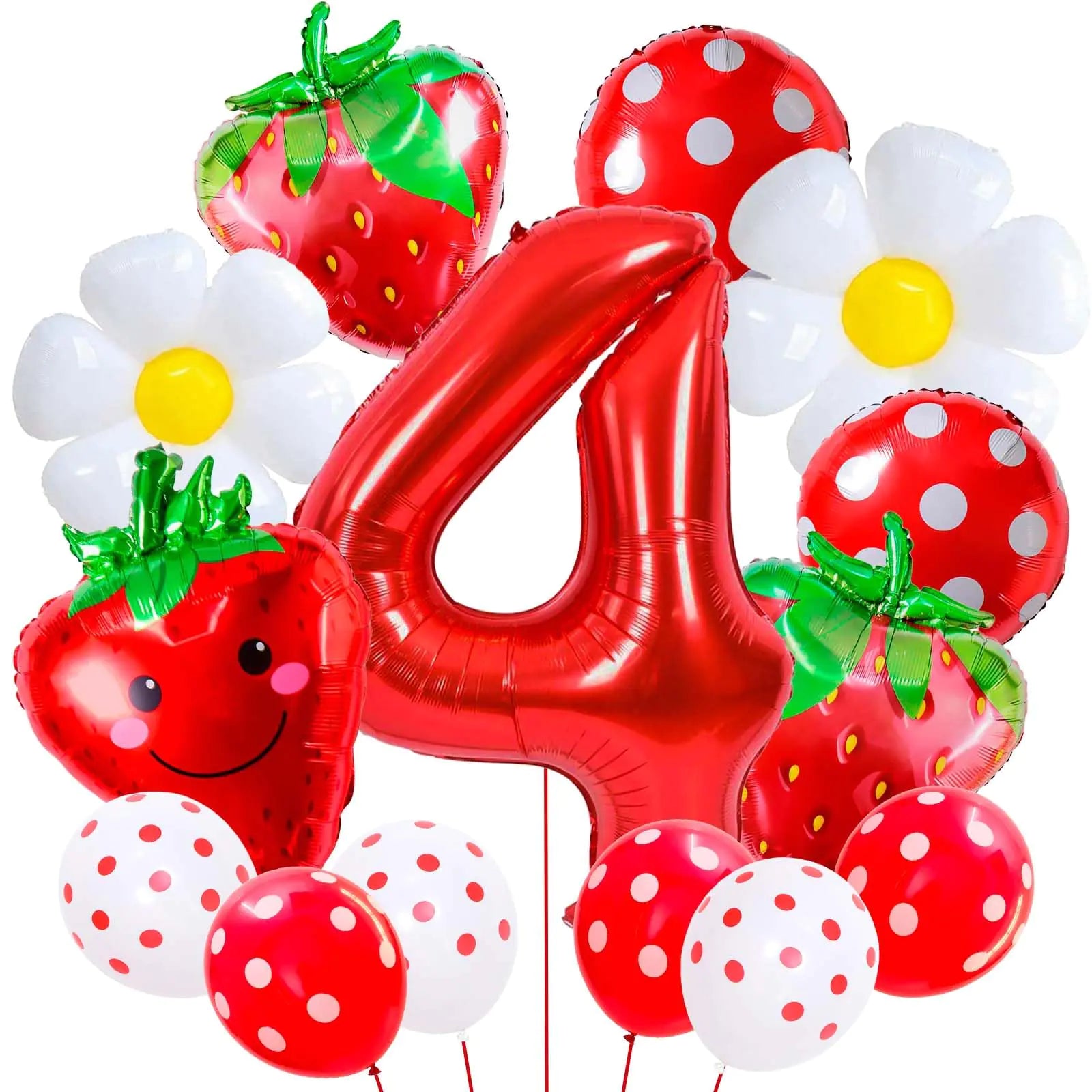 🍓 Strawberry Birthday Decorations – Balloon Set with Number “4” for Party & Anniversary