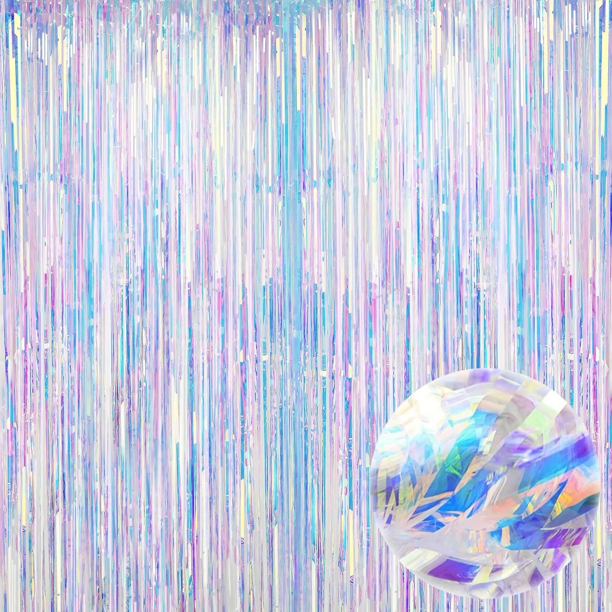 Elevate any celebration with the 3.2 x 6.5 ft Iridescent Foil Fringe Curtain. Its shimmering holographic glow instantly adds sparkle, making it the perfect backdrop for birthdays, bachelorette parties, anniversaries, office celebrations, or photo booths.