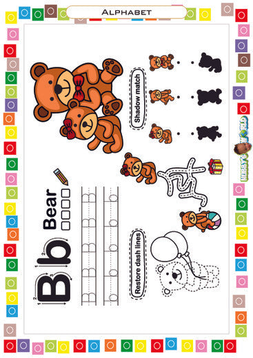 Make learning the alphabet fun with this Letter B tracing worksheet featuring a cute bear theme! This printable includes multiple early learning activities: uppercase and lowercase B/b tracing with directional guides, a shadow matching game to boost visual discrimination skills, and a dashed-line tracing activity for fine motor development. Designed to keep preschool and kindergarten kids engaged while practicing important foundational skills. Ideal for homeschool, classroom centers, or extra at-home practice.