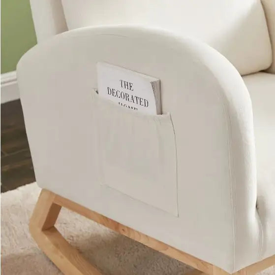 This beige velvet rocking chair is the perfect blend of comfort and classic charm. Upholstered in soft, plush velvet, its neutral beige tone adds a touch of understated elegance, making it easy to blend with any décor. The high, gently curved backrest offers supportive comfort, while the cushioned seat invites you to settle in and unwind. Smooth wooden rockers in a natural or dark stain provide a soothing, rhythmic motion, ideal for relaxing moments with a book, a cup of tea, or a sleeping baby. Whether placed in a nursery, reading nook, or cozy corner of the living room, this chair brings warmth, texture, and timeless style to your space.