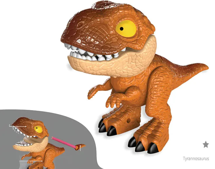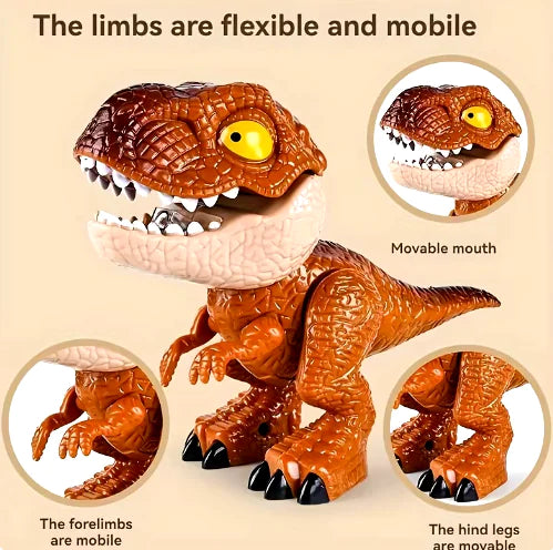Realistic dinosaur design with flexible, moving parts. The mouth opens, hands swing, and legs move, encouraging interactive play.