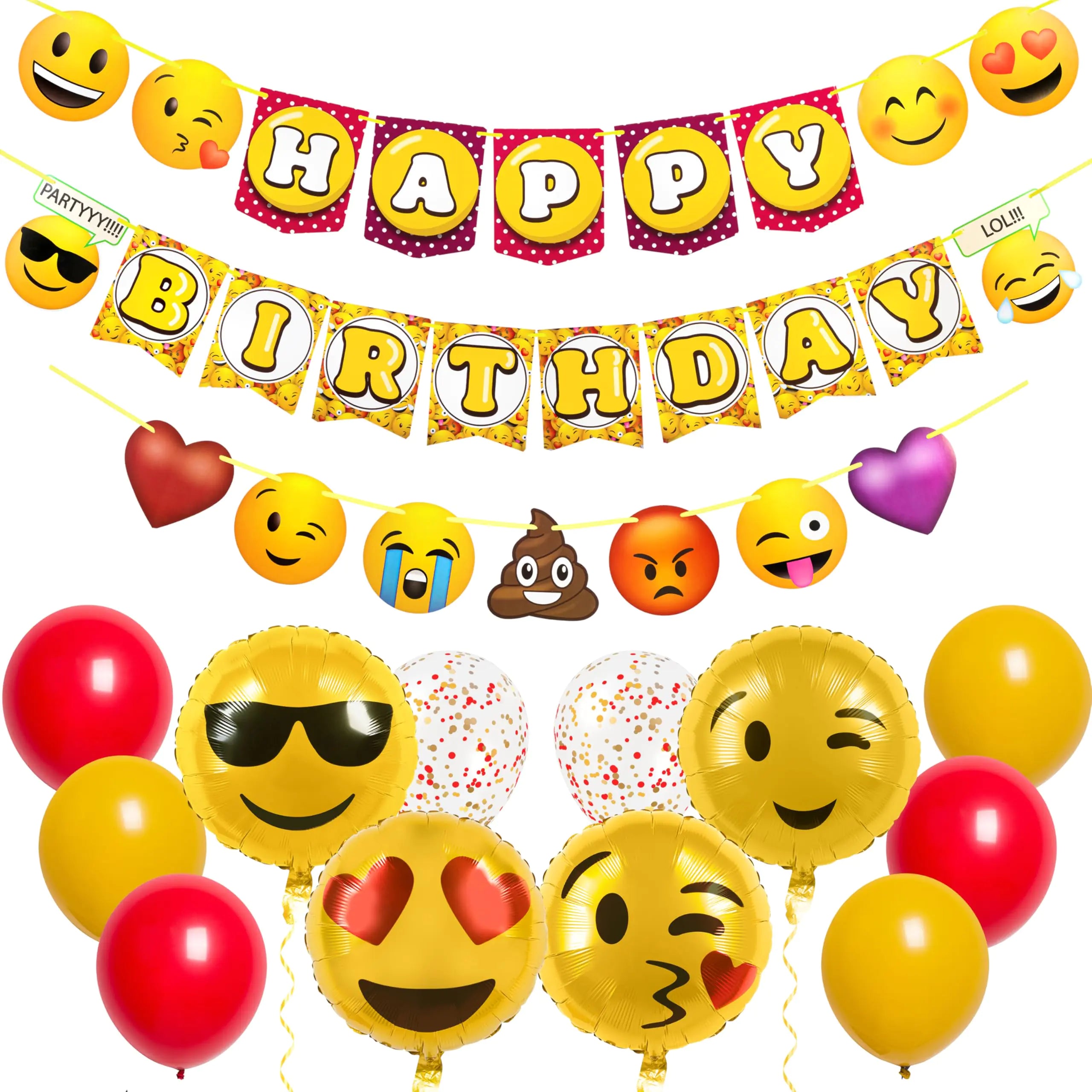 😀 Emoji Birthday Party Kit – Banner, Balloons & Confetti Decorations