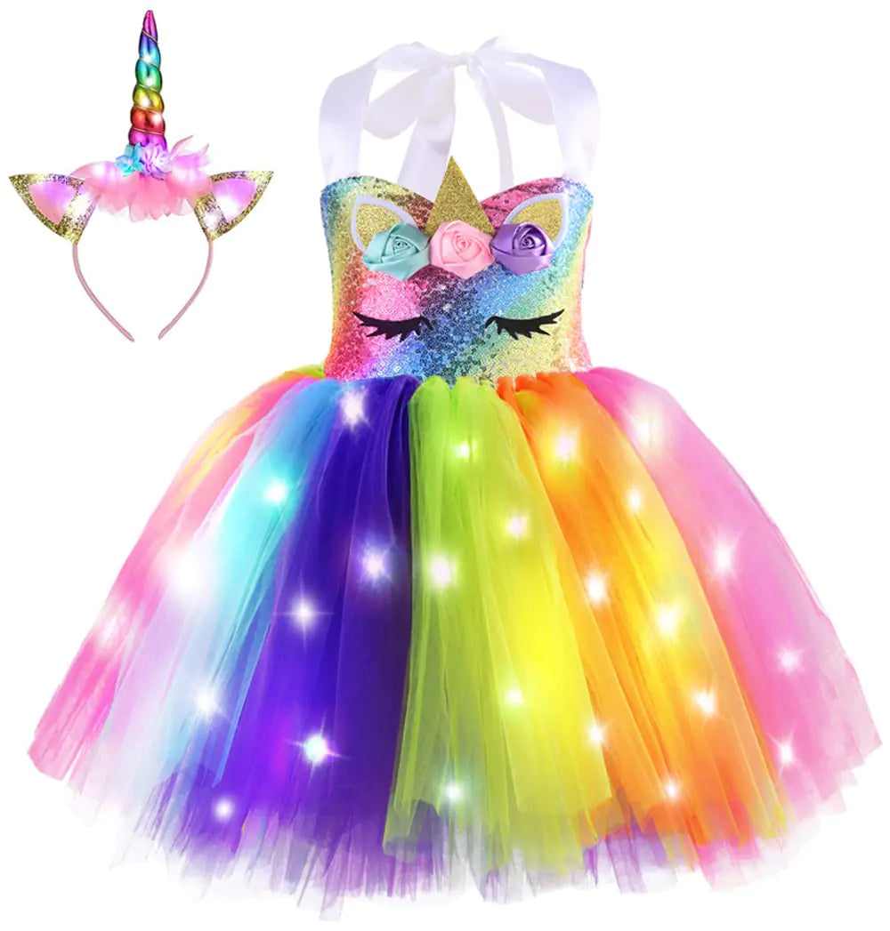 🦄 LED Unicorn Tutu Dress with Light-Up Headband – Kids Princess Costume Set