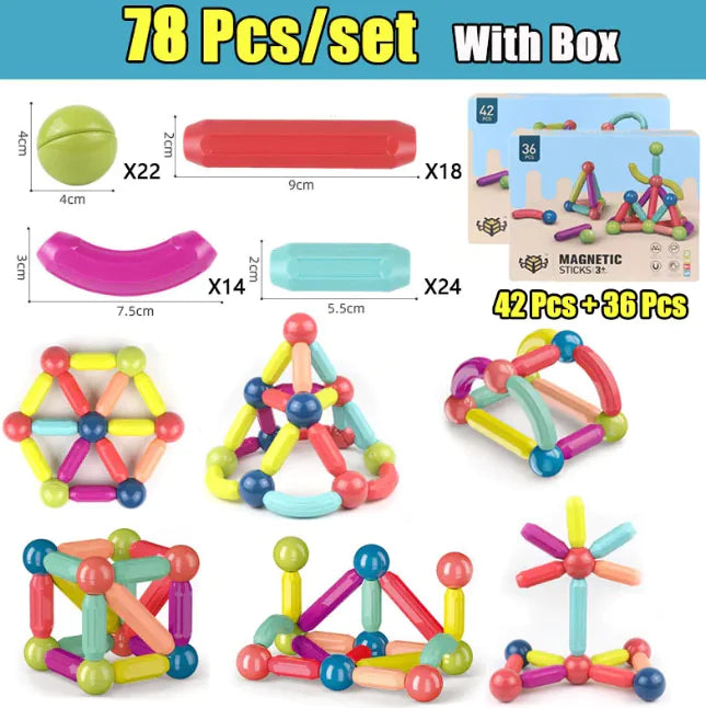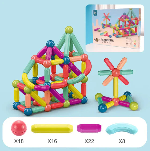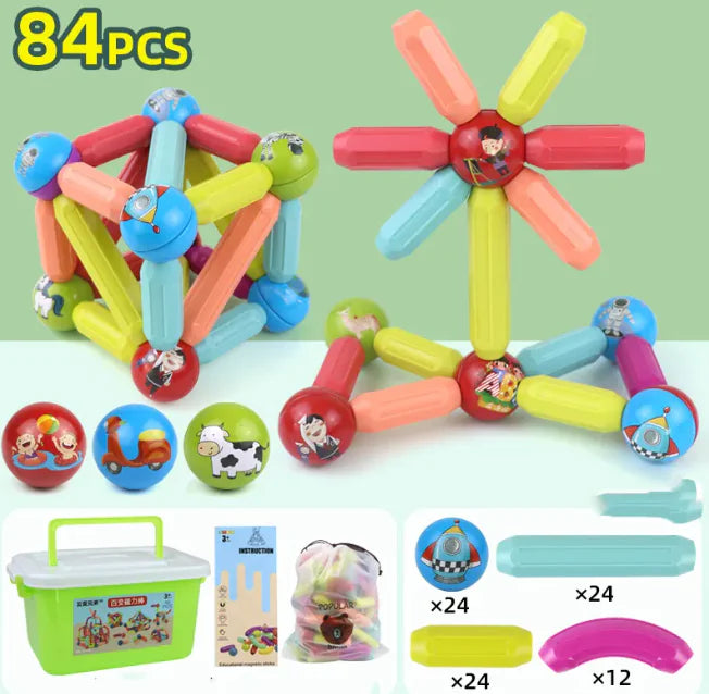 The Magnetic Building Set is a fun and educational toy that encourages creativity and early learning. Designed for children, this set includes a variety of magnetic rods and building blocks that can be easily connected to create endless structures. The larger pieces are easy to handle, making it perfect for young builders to explore their imagination while developing fine motor skills and spatial awareness. A great gift for children, this set promotes learning through play and helps enhance problem-solving abilities.