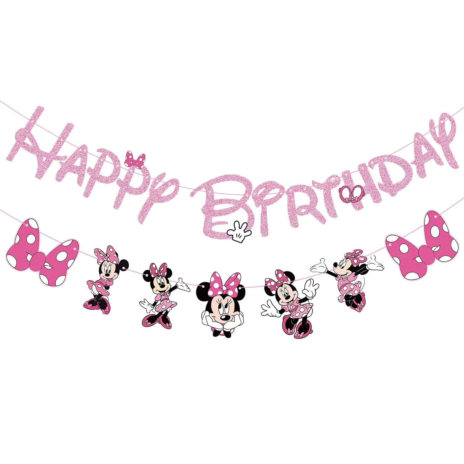 • Minnie Mouse Design – Cute Minnie-inspired shapes make the banner a perfect match for kids’ parties.