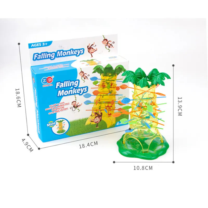 The board game involves a playful challenge where 2-4 players take turns removing sticks from a coconut tree , trying not to let the hanging monkeys fall. The player who collects the most monkeys wins, providing both fun and cognitive development for children. Designed to enhance cognitive skills, problem-solving, and creativity, this game is perfect for early education and family bonding time.