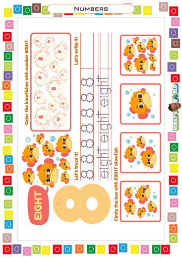 This fun and engaging Number 8 worksheet helps kids learn to count, trace, and recognize the number eight through interactive dolphin-themed activities. Children can practice writing the number 8, trace dotted lines, color groups of eight, and circle the correct boxes with eight objects. Designed for preschool, kindergarten, and early learners, this worksheet supports number recognition, fine motor skills, and early math development. Perfect for homeschooling, classroom lessons, or extra practice at home, this printable makes learning numbers exciting and effective.