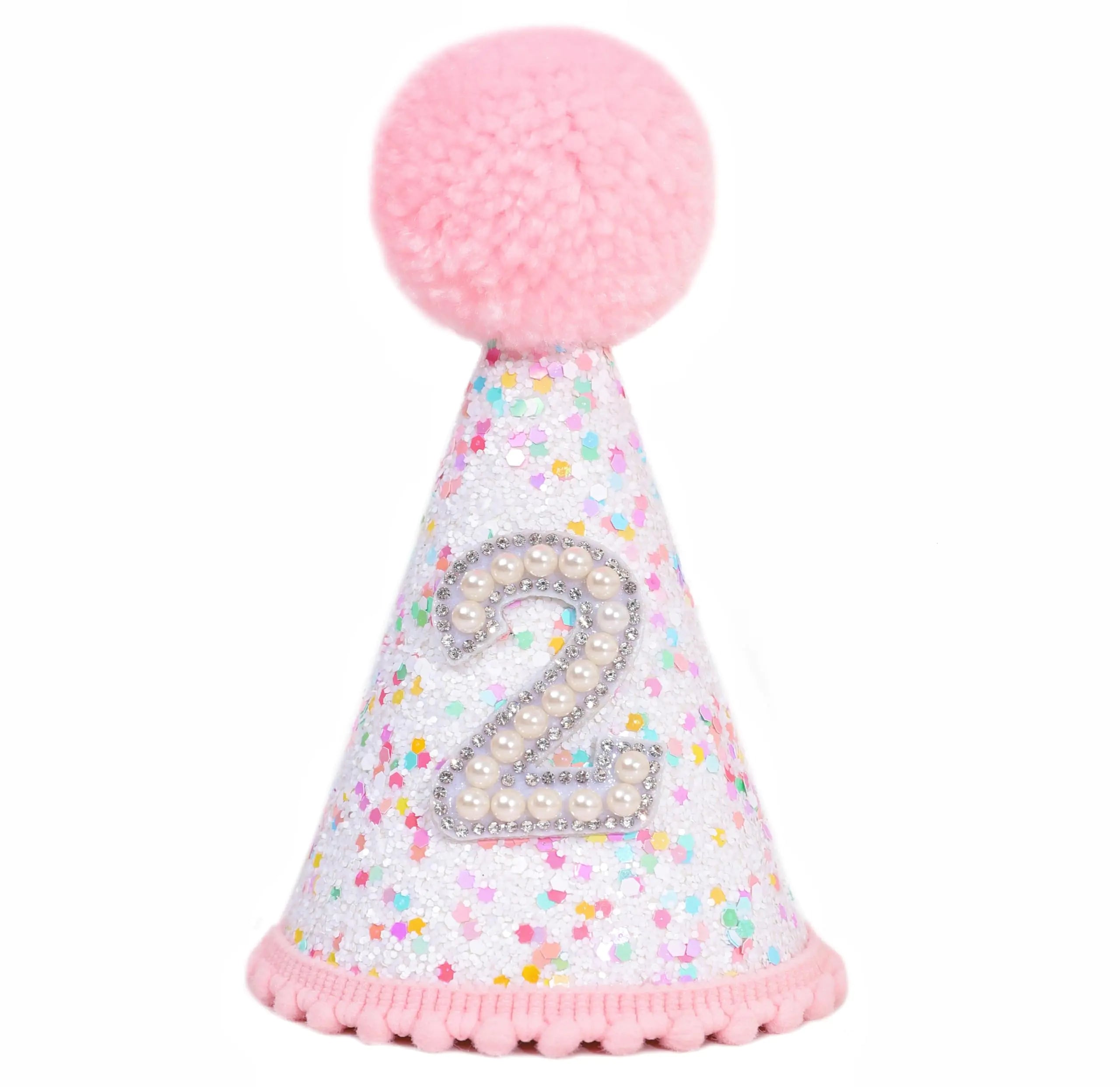 Eye-Catching Design: Celebrate her milestone with the 5.7”*3.5” Pink 2nd Birthday Hat, adorned with sparkling glitter and a vibrant pink pom-pom. It’s the perfect accessory for a memorable first birthday party! 🎉