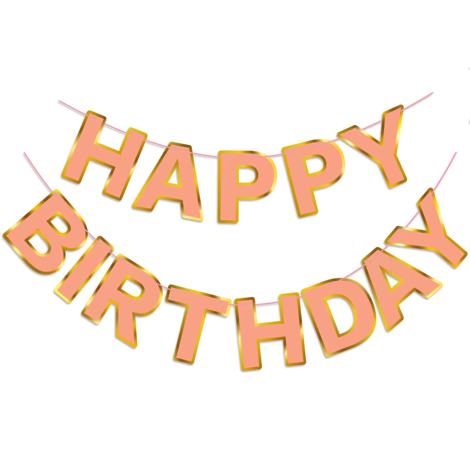 Celebrate in style with this Rose Gold Happy Birthday Banner! This set includes 13 sturdy paper flags that spell out “HAPPY BIRTHDAY” on two satin ribbons (8.3ft and 6.7ft). Featuring a trendy golden border design, this banner is perfect for creating a stylish and fun atmosphere at any birthday celebration.