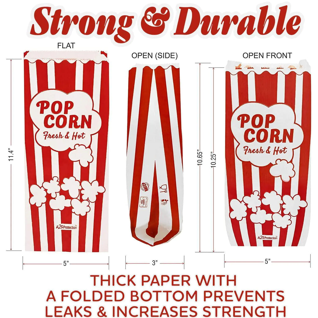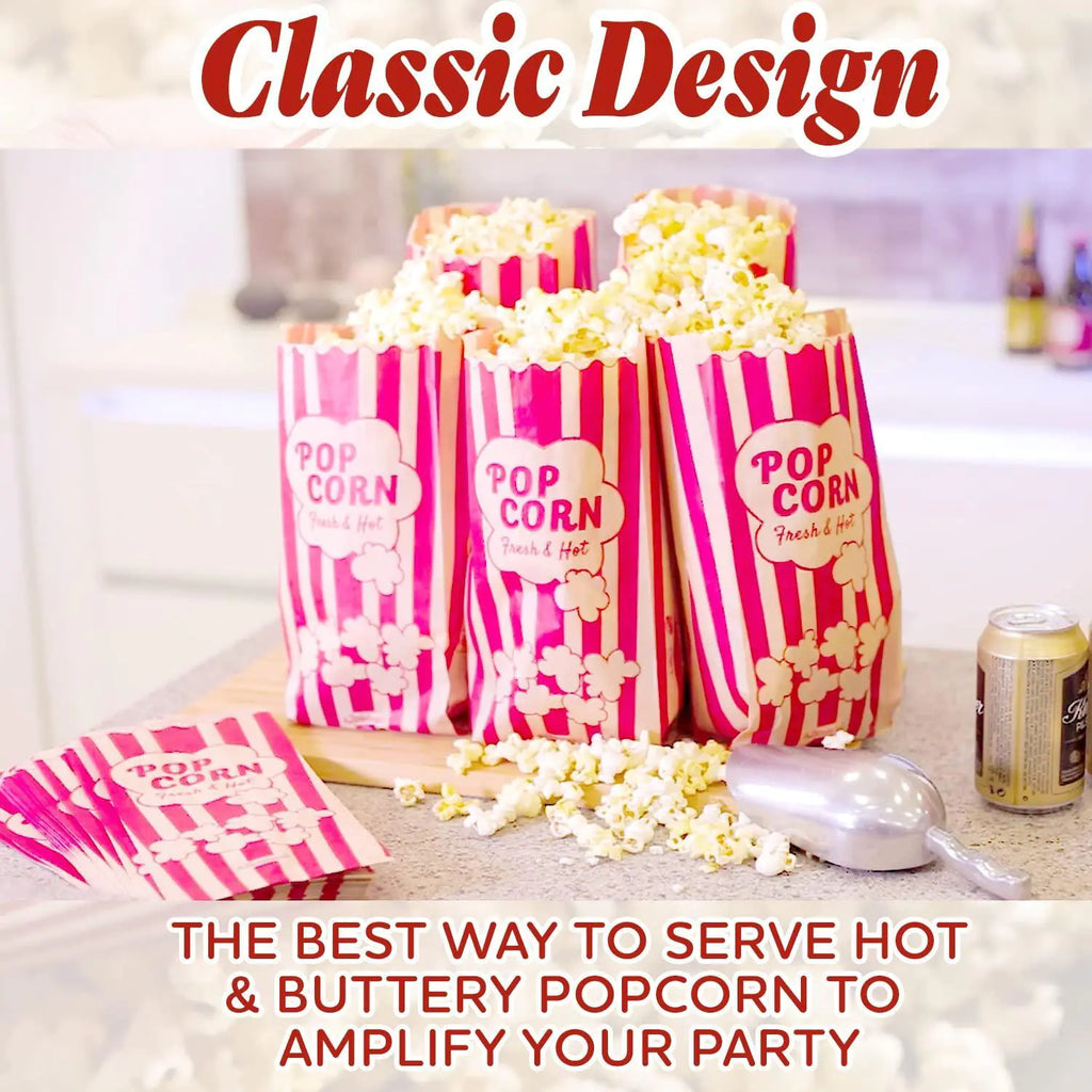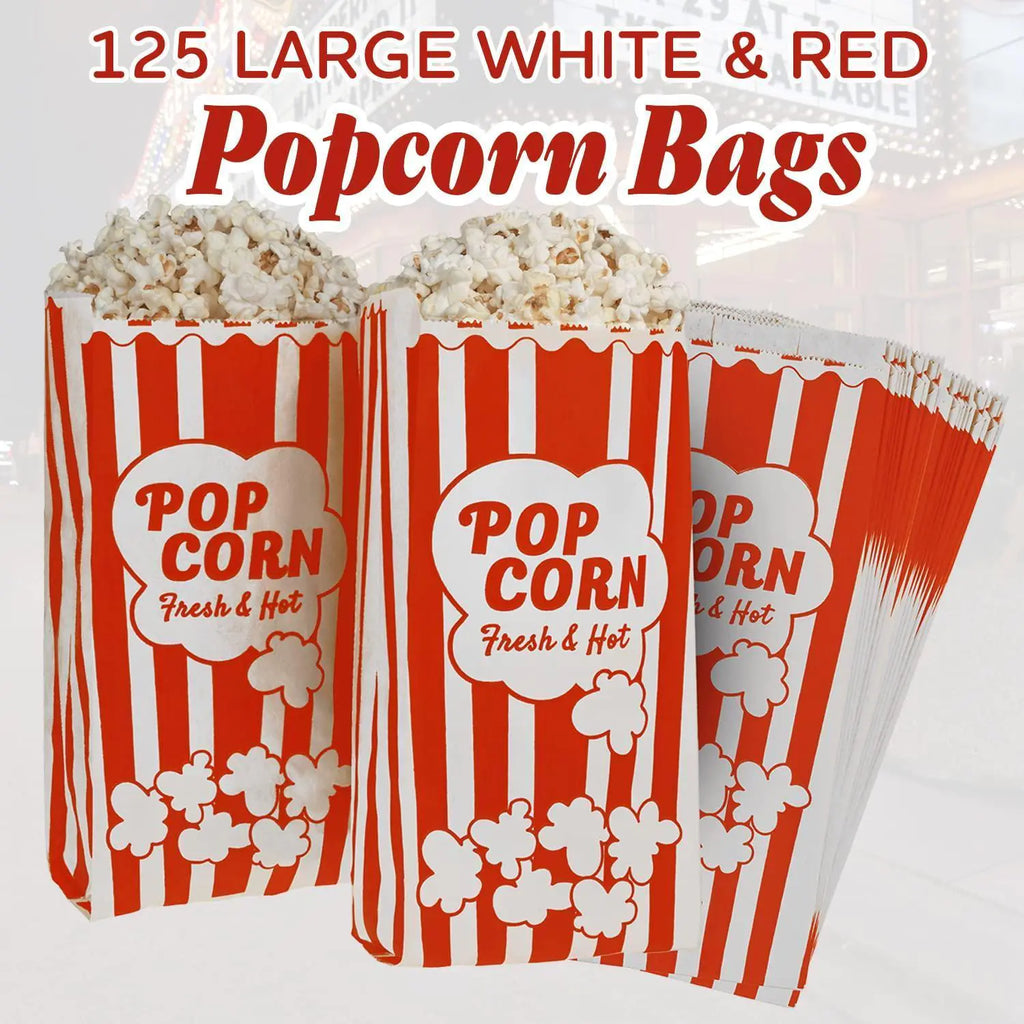 Make every event extra fun with this 2oz Bulk Pack of 125 Popcorn Bags, perfect for parties, movie nights, and concession stands. These classic white and red striped paper bags measure 11" x 5", offering just the right size for individual servings of popcorn, snacks, candies, or treats. Durable yet lightweight, these mini popcorn bags are easy to carry and ideal for family movie nights, birthday parties, school events, carnivals, or game-day gatherings. The timeless red-and-white striped design adds a festive, nostalgic touch that guests of all ages will love. Whether you’re stocking up for concession stands, preparing goodie bags, or planning a themed celebration, this bulk 125-piece set ensures you’ll have plenty on hand for large groups. Convenient, disposable, and perfectly portioned, these bags make serving snacks simple, stylish, and hassle-free.