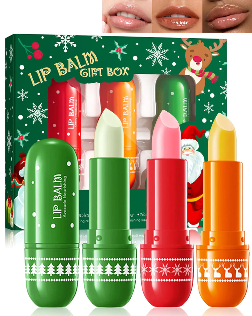 3 Pcs Vegan Lip Balm Lip Balm Kit-3Pcs Lip Care MoisturizerHydrating Lip Repair Sticks for Dry Cracked LipVegan & Cruelty-Free Chapstick Lip Products Christmas Stocking Stuffers Lip Treatment Gift Set for Women MenProduct Description:Item: Lip Balm Gift BoxNET: About 3PCS*3.8gShelf Life: 3 YearsFeature:1. Moisturizing and nourishing lips: lip balms contain moisturizing ingredients that provide extra nourishment and keep the skin on your lips hydrated keeping them soft and moisturized.2. Repairing Care: For lips that are already dry cracked or damaged lip balms often also contain repairing ingredients such as Vitamin Ewhich promotes healing and repairs lip tissue.3. Suitable for various occasions: as a gift the Christmas lip balm gift box is suitable for family friends and colleagues as well as a small gift or raffle prize at holiday parties company annual meetings school activities etc. Its exquisite appearance and practicality make it one of the popular holiday gifts.4. Very silky smooth texture good absorbent melts on your lips on contact moisturizing your lips.How To Use:Directions Open the lid swirl out the lip balm and apply evenly on lips.Tips:1. Storage Keep in a cool place away from heat and direct sunlight and out of the reach of children.2. Please try the product on the skin behind the ear first if you feel uncomfortable please stop using it.